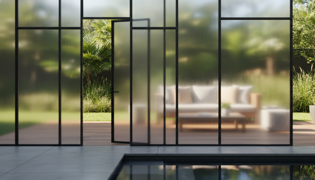 For a sleek, high-end look that still allows light, frosted or tinted glass panels are an excellent choice. They provide full visual privacy without blocking sunlight entirely. The mood is sophisticated and elegant, often seen in luxury settings with polished chrome or stainless steel accents and a refined color palette.