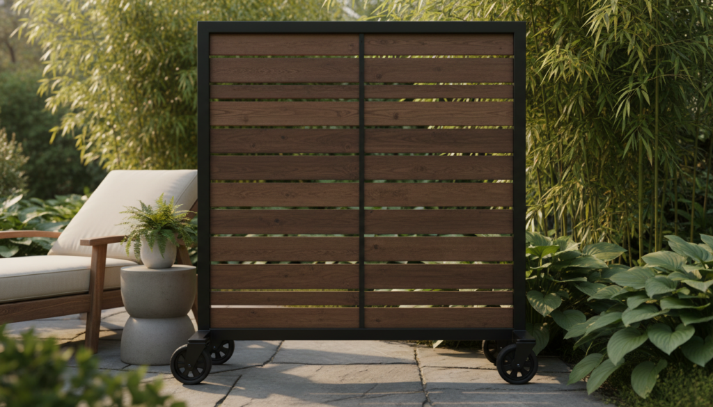 Construct a privacy screen on casters for ultimate flexibility. This allows you to reconfigure your space as needed, blocking views only when necessary. Materials can range from slatted wood to repurposed doors. The mood is adaptable and practical, reflecting a dynamic outdoor living style.