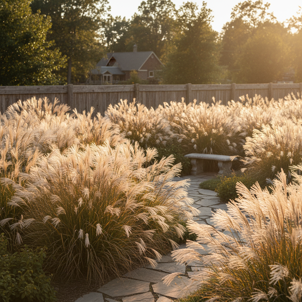 Grasses like Pampas, Miscanthus, or Feather Reed provide a soft, flowing privacy barrier. Their feathery plumes and gentle movement add dynamic texture and sound to the landscape. The color palette typically ranges from muted greens to golden browns, creating a serene, naturalistic, and somewhat wild aesthetic.