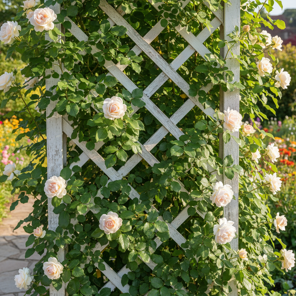 Classic and charming, a lattice screen provides a framework for climbing plants like ivy, clematis, or jasmine. As the plants mature, they form a thick, fragrant green wall. This idea evokes a romantic garden feel, with natural textures and a palette of greens and floral colors, perfect for a cottage or traditional garden.
