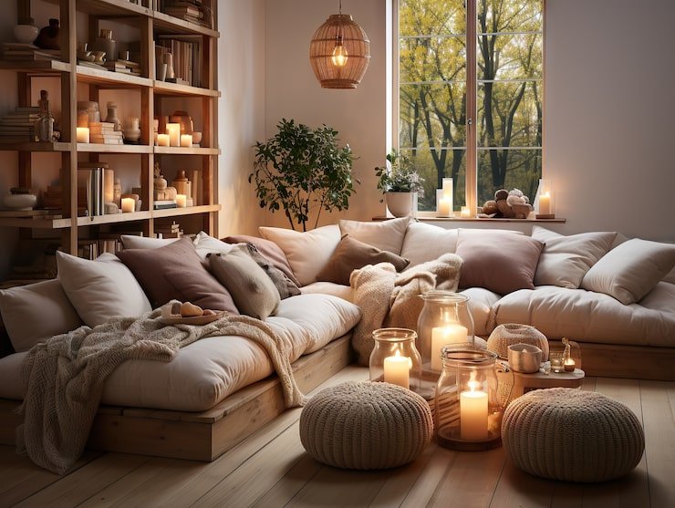 Add cozy throws and blankets to your furniture to keep you warm and snug. Choose materials that are soft and warm, such as wool or fleece.
