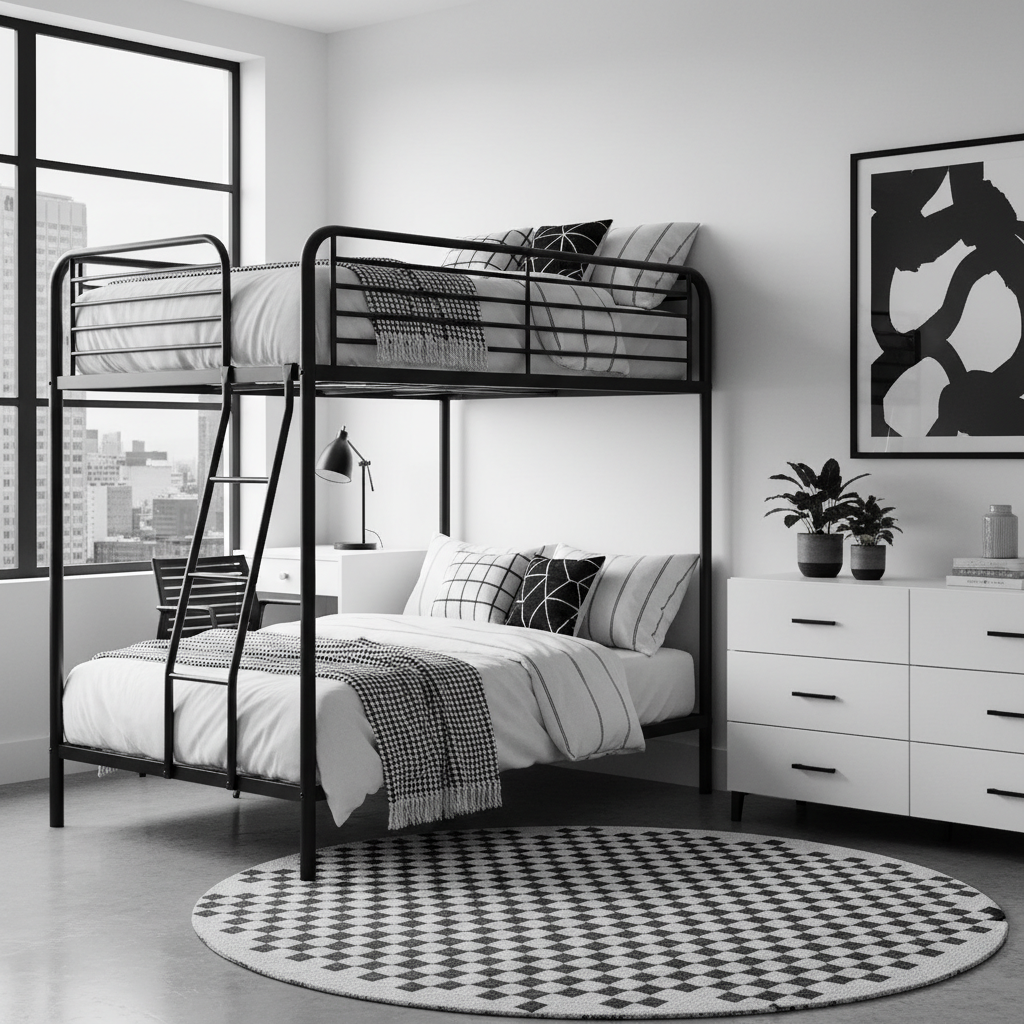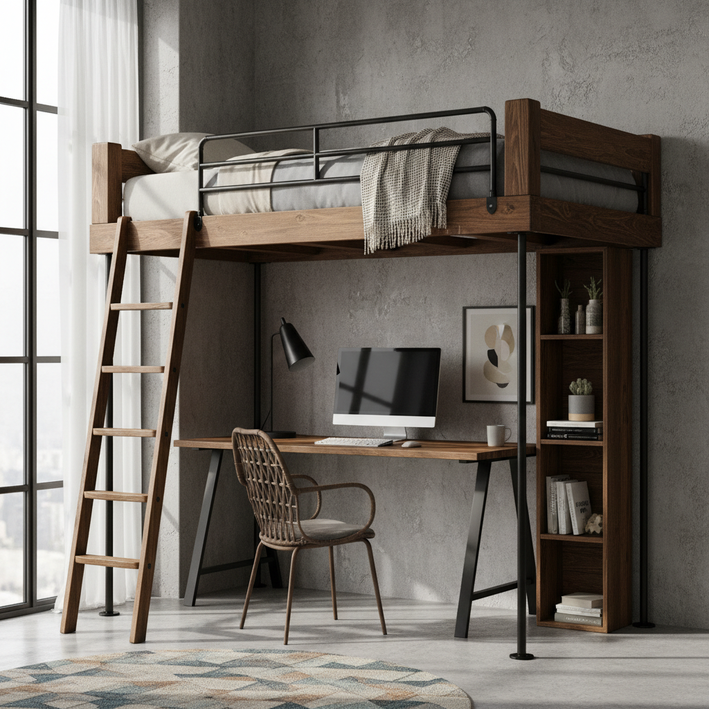 When space is at a premium, a lofted study station bunk bed is a genius solution. It elevates one bed to create a dedicated workspace or lounge area underneath, perfect for older students.