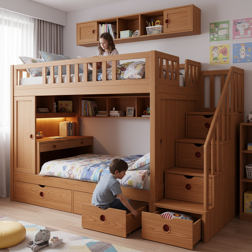 For ultimate functionality and a sense of individual space, the L-shape bunk bed configuration is a brilliant choice. This design maximizes floor area while providing distinct zones for each child.
