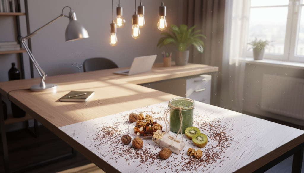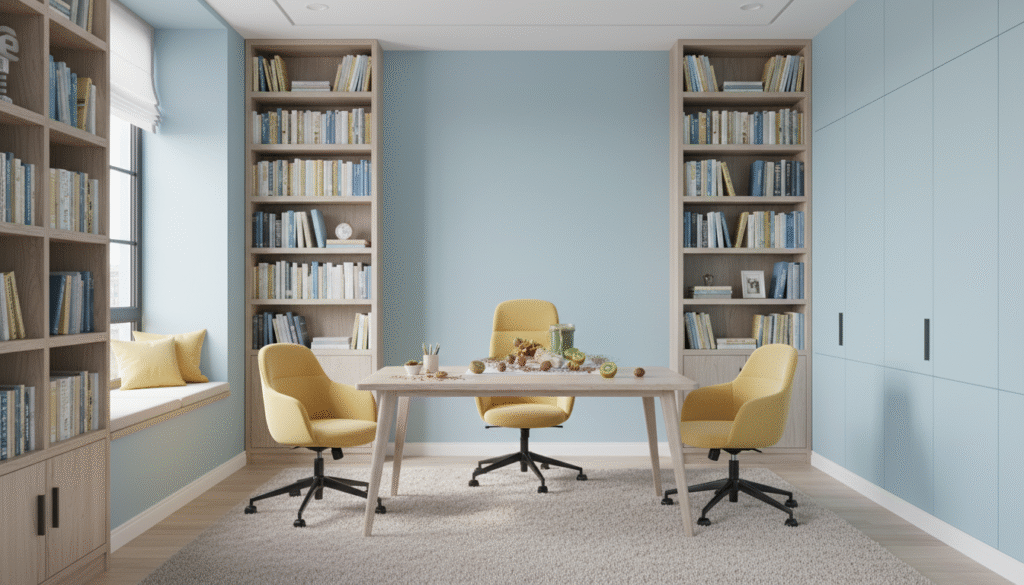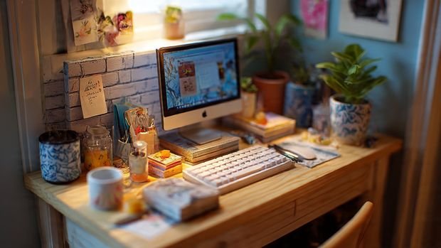 A slim floating desk or compact table paired with a stylish chair can create a beautiful, functional nook. Add a small lamp, framed art, and a plant to keep it bright and motivating.