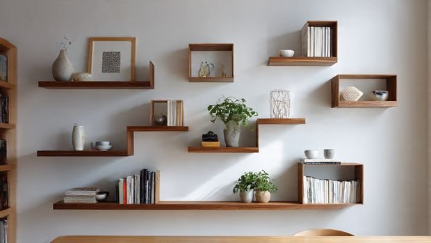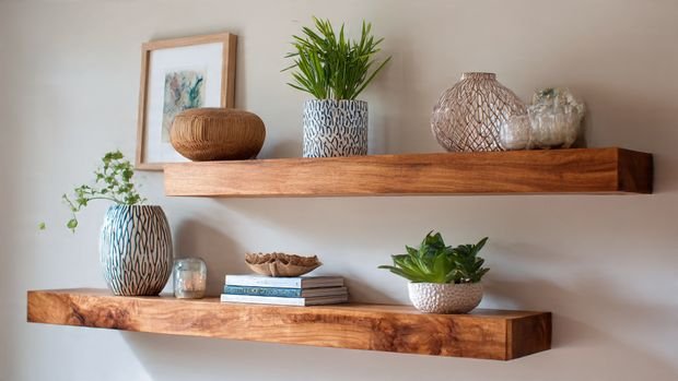 Floating shelves are both practical and stylish — perfect for corners that need a little personality without taking up floor space.