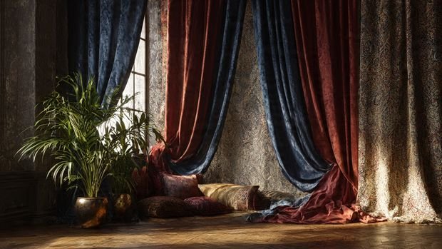 Soft fabrics can make a corner feel complete even without furniture. Use long curtains that reach the floor to add height and movement to the space.