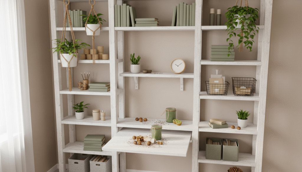 A ladder shelf is a stylish solution for unused corners — it’s slim, functional, and great for displaying décor.