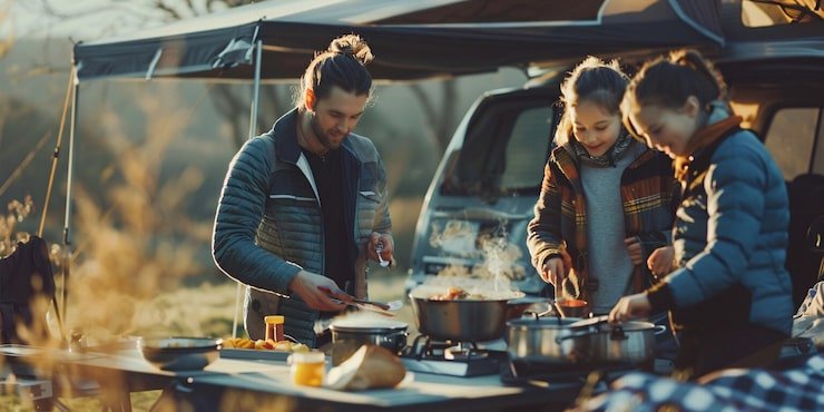 Cook meals together over a campfire or in the cabin’s kitchen.