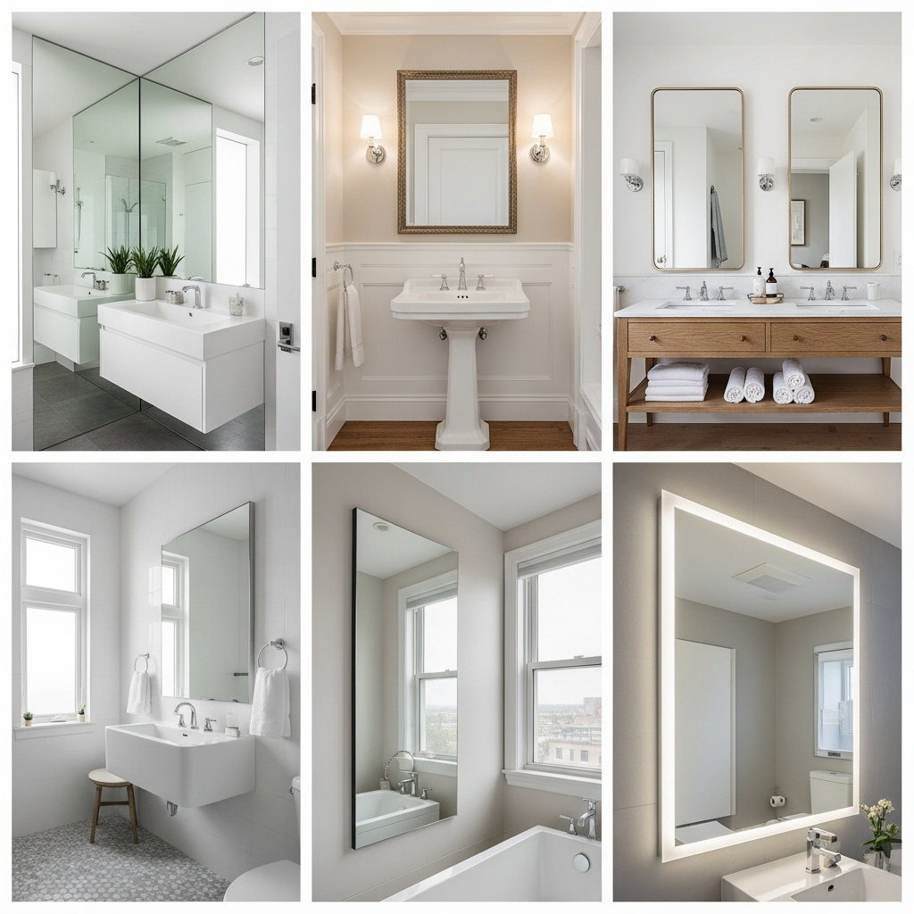 Mirrors are a designer’s best friend in small spaces. A generously sized mirror not only serves a practical purpose but also reflects light and visual depth, instantly making the room feel twice its size.