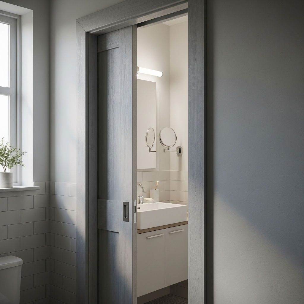 Traditional swing doors can eat up valuable floor space, especially in a compact bathroom. A pocket door, which slides into the wall, or a barn door, which slides along the wall, eliminates this problem entirely.