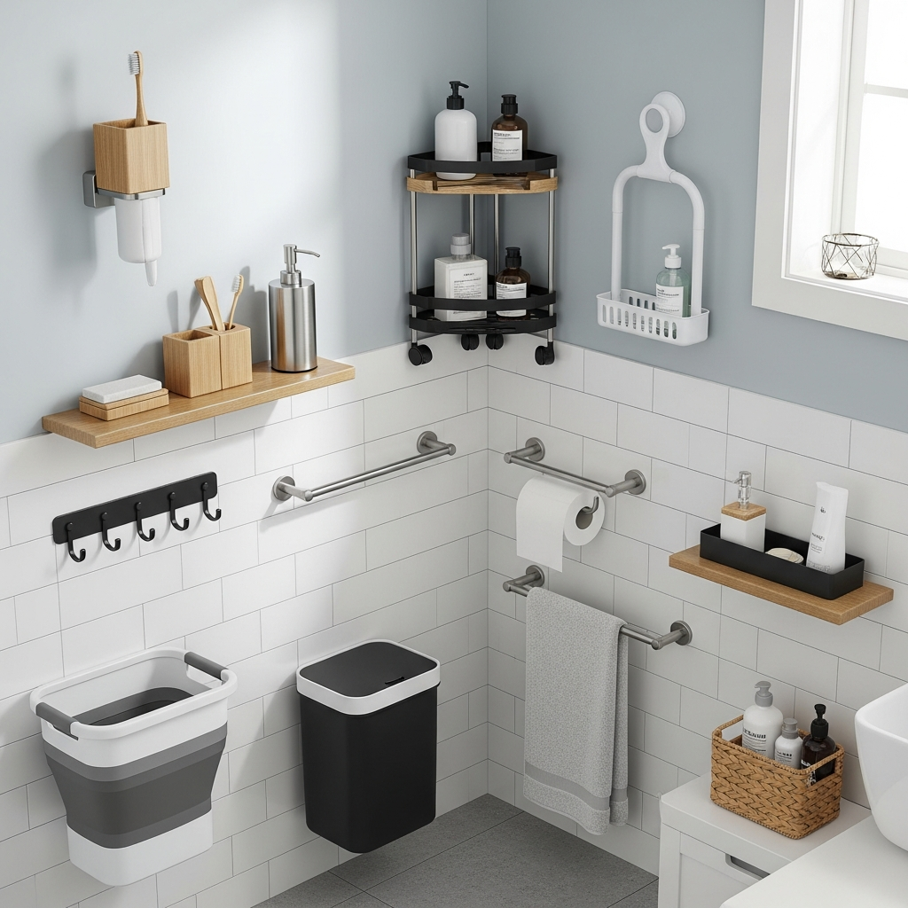 Every item in a small bathroom needs to earn its keep and ideally be space-efficient. Look for accessories that are either slim, wall-mounted, or multi-functional.