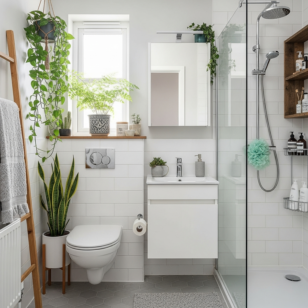 Bringing nature indoors can instantly refresh any space, and a small bathroom is no exception. Plants add a touch of life, color, and organic texture, making the room feel more vibrant and inviting.