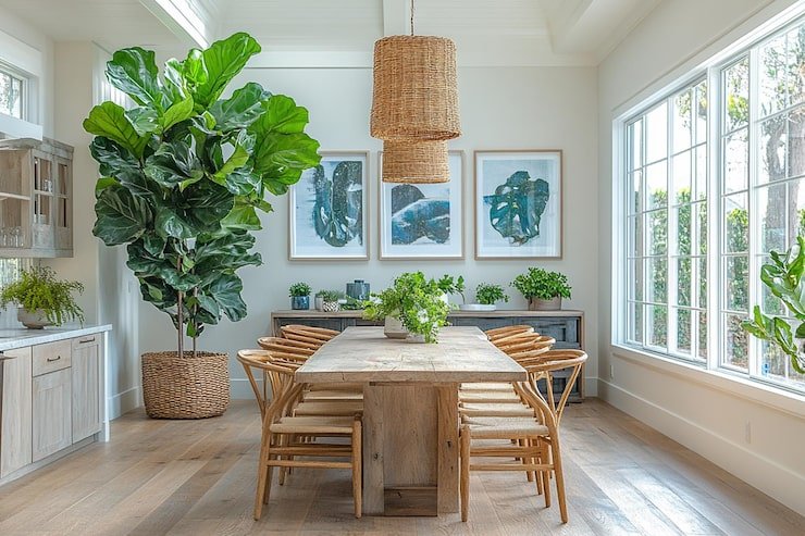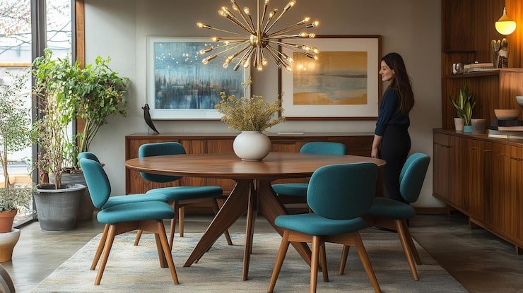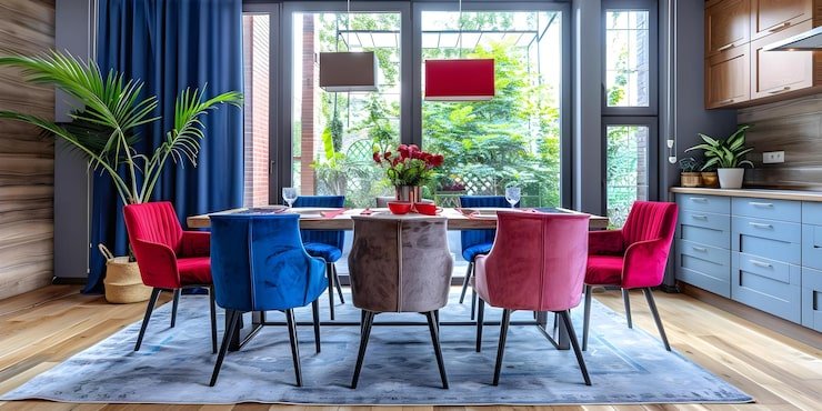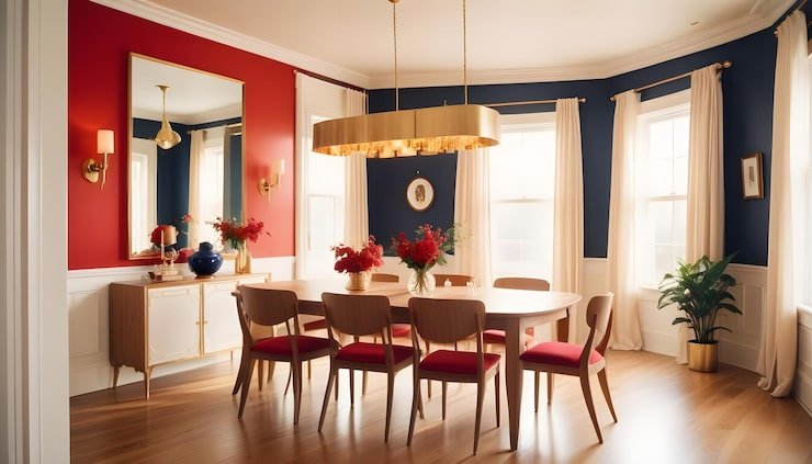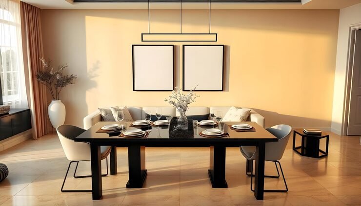 Mirrors can create the illusion of a larger space by reflecting light and images. Hang a large mirror above the dining table or use a mirrored wall to create the illusion of more space.
