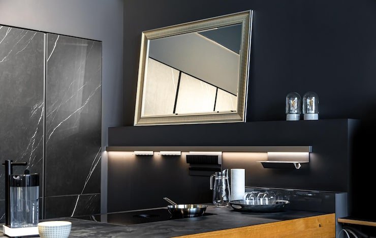 Reflective surfaces create an illusion of space and make the kitchen feel larger.
