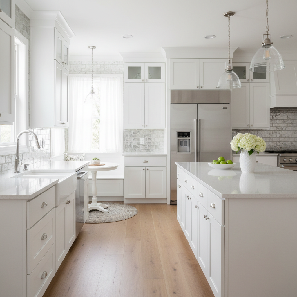 There’s a reason white kitchens remain popular for small spaces—they reflect light and create an illusion of openness. Elevate this classic by installing a mirrored backsplash. This reflective surface literally doubles the visual space, bouncing light and views around the room. Pair crisp white shaker cabinets with a light marble-effect countertop for a touch of elegance. The mood is undeniably fresh, airy, and surprisingly expansive.