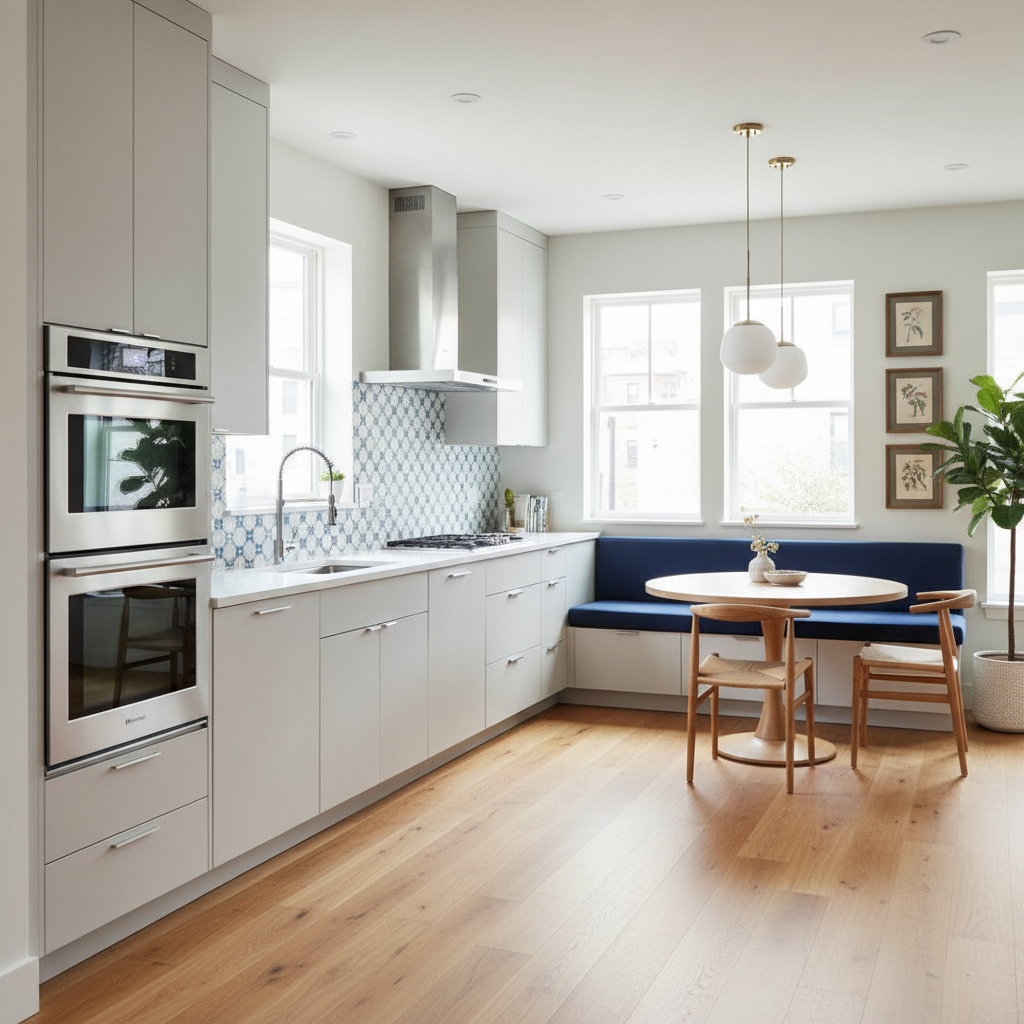 3. Single-Wall Kitchen with an Integrated Dining Nook