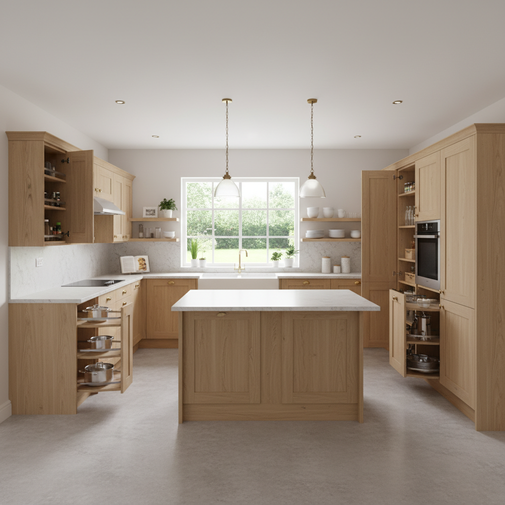 When horizontal space is limited, go vertical. Floor-to-ceiling cabinetry, tall pantry units, and stacked wall cabinets draw the eye upward, making the room feel taller. Use a consistent, light color for all cabinetry to avoid a cluttered look. Consider hidden pull-out pantries for spices and narrow shelves for cookbooks. A neutral color palette, perhaps soft greys and whites, with natural wood accents, keeps the space feeling grounded. This layout is a triumph of organization and efficiency.