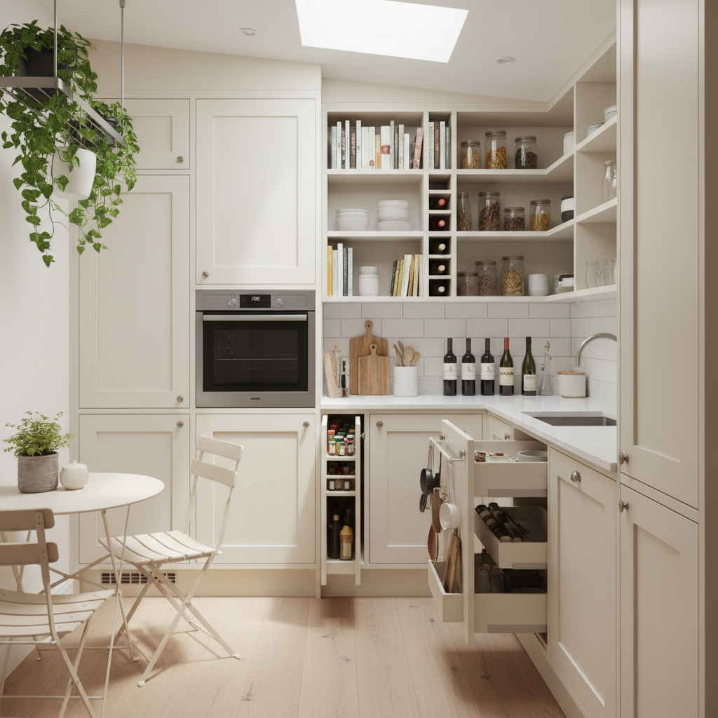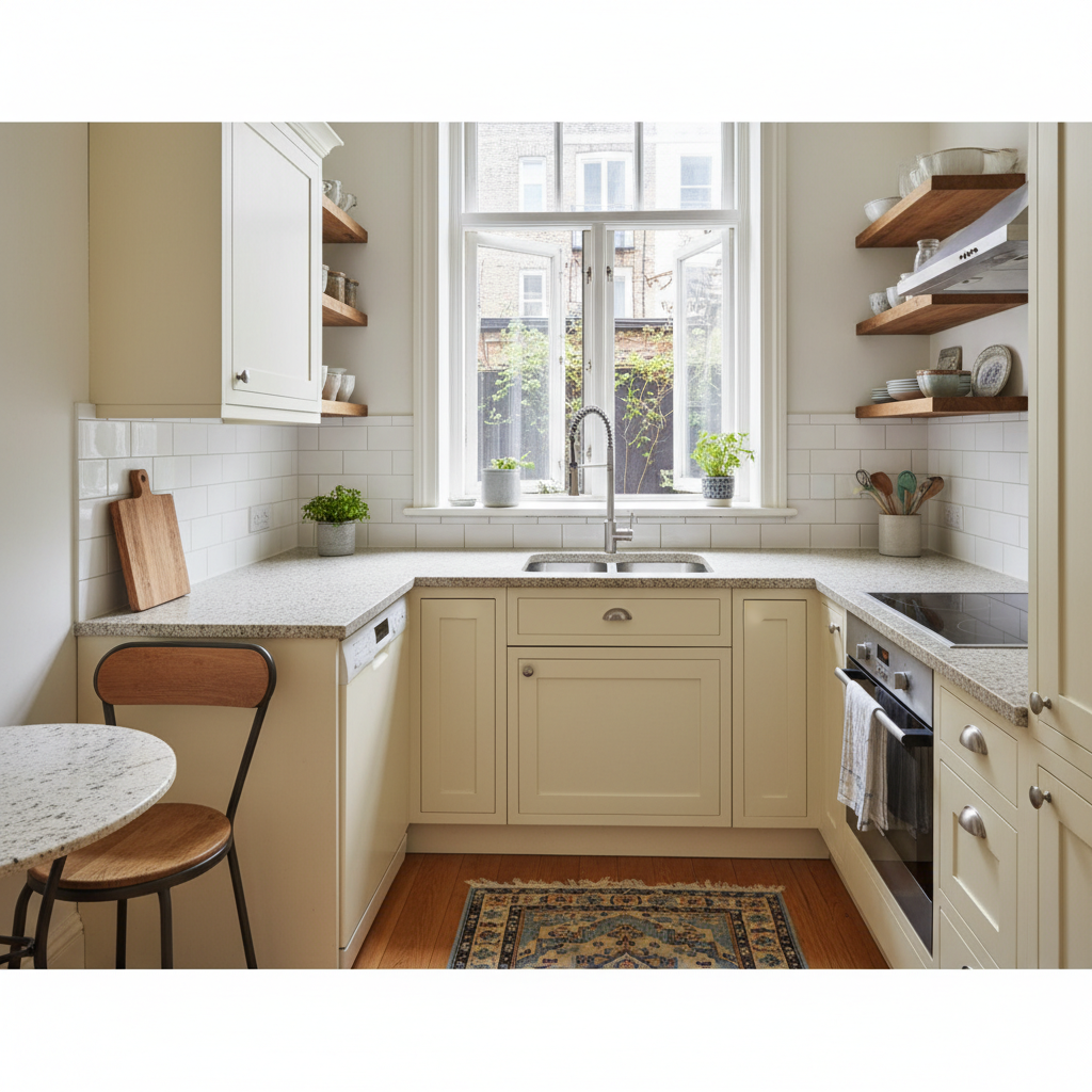 While often seen in larger homes, a compact U-shaped layout can work wonders in a small kitchen by maximizing every available surface. The key is smart corner solutions like pull-out shelves or lazy Susans that make storage accessible. Pale cabinetry, such as cream or light beige, combined with a reflective backsplash like subway tile, will brighten the space. Incorporate under-cabinet lighting to illuminate work areas and add visual depth. This layout feels incredibly efficient and thoughtfully designed.