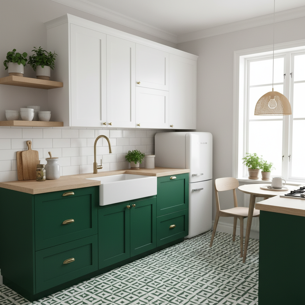 Don’t shy away from color in a small kitchen. A bold color pop on lower cabinets or a single accent wall can inject personality without overwhelming the space. Pair a vibrant hue, like emerald green or a sunny yellow, with neutral upper cabinets or white walls to maintain balance. Keep other elements simple and sleek to let the color shine. The atmosphere is energetic, playful, and uniquely yours.