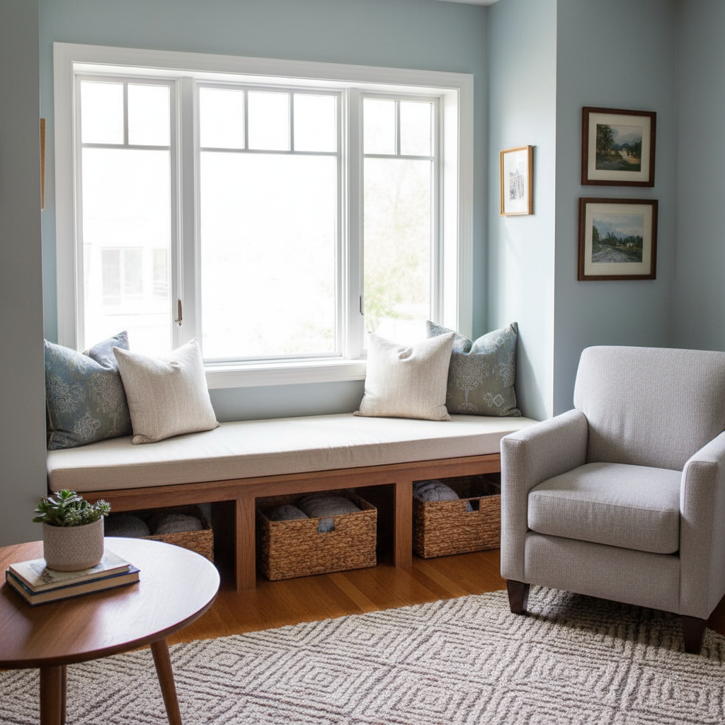 If you have a window recess, transform it into a cozy window seat. This provides extra seating without taking up valuable floor space. Add plush cushions and throw pillows for comfort. Underneath, built-in drawers can offer hidden storage. A light, airy fabric for the cushions and soft lighting create a peaceful reading nook or a charming spot for contemplation.