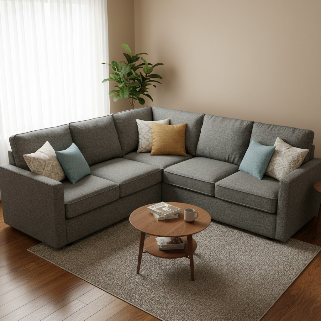 Utilize an often-underestimated corner by placing your main sofa there. This anchors the room and creates a natural focal point, leaving other walls free for shelving or artwork. Opt for a sleek, armless sofa or a chaise lounge in a neutral tone like warm grey or soft beige. Introduce textures with plush velvet cushions and a woven jute rug. The mood is intimate and grounded, perfect for quiet evenings.