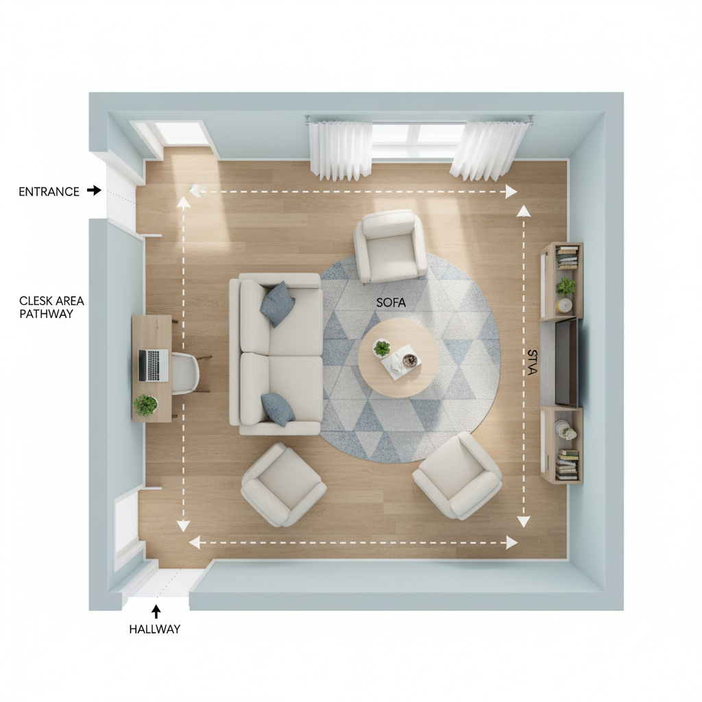 Ensure there are clear, unobstructed pathways (at least 24-30 inches wide) around your furniture. This is crucial for flow and making a small room feel less cramped. Arrange furniture to facilitate easy movement from one area to another. Leggy furniture helps maintain visual openness. The mood is organized, functional, and effortlessly navigable.
