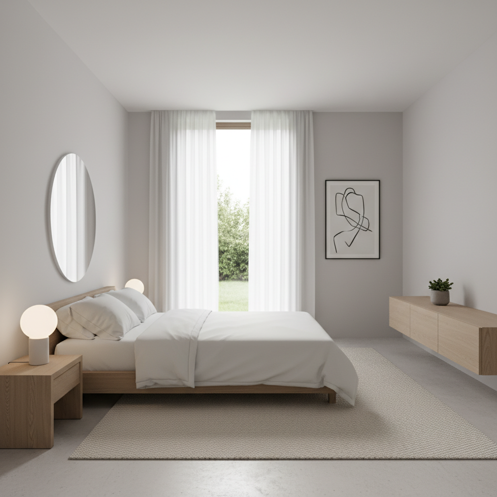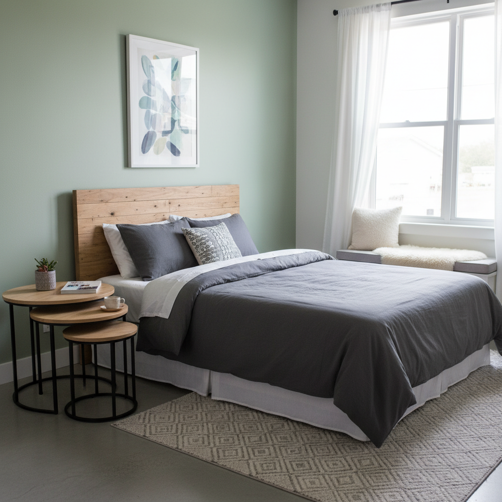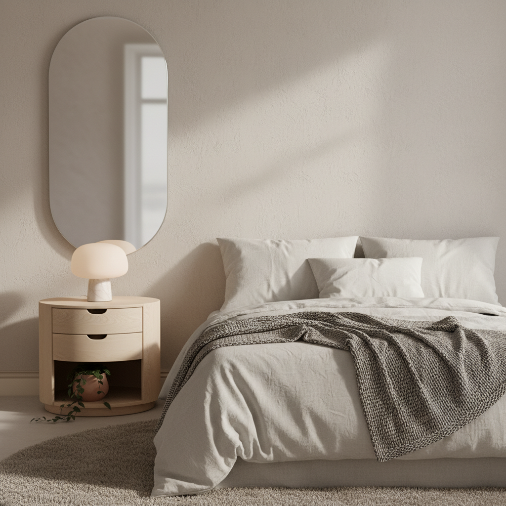 Furniture with rounded edges can improve flow in a small room by eliminating sharp corners that might impede movement. A round nightstand or an oval coffee table (if space allows) can make the room feel softer and less rigid. Materials like light wood or matte metal enhance this gentle aesthetic. The mood is fluid and inviting.