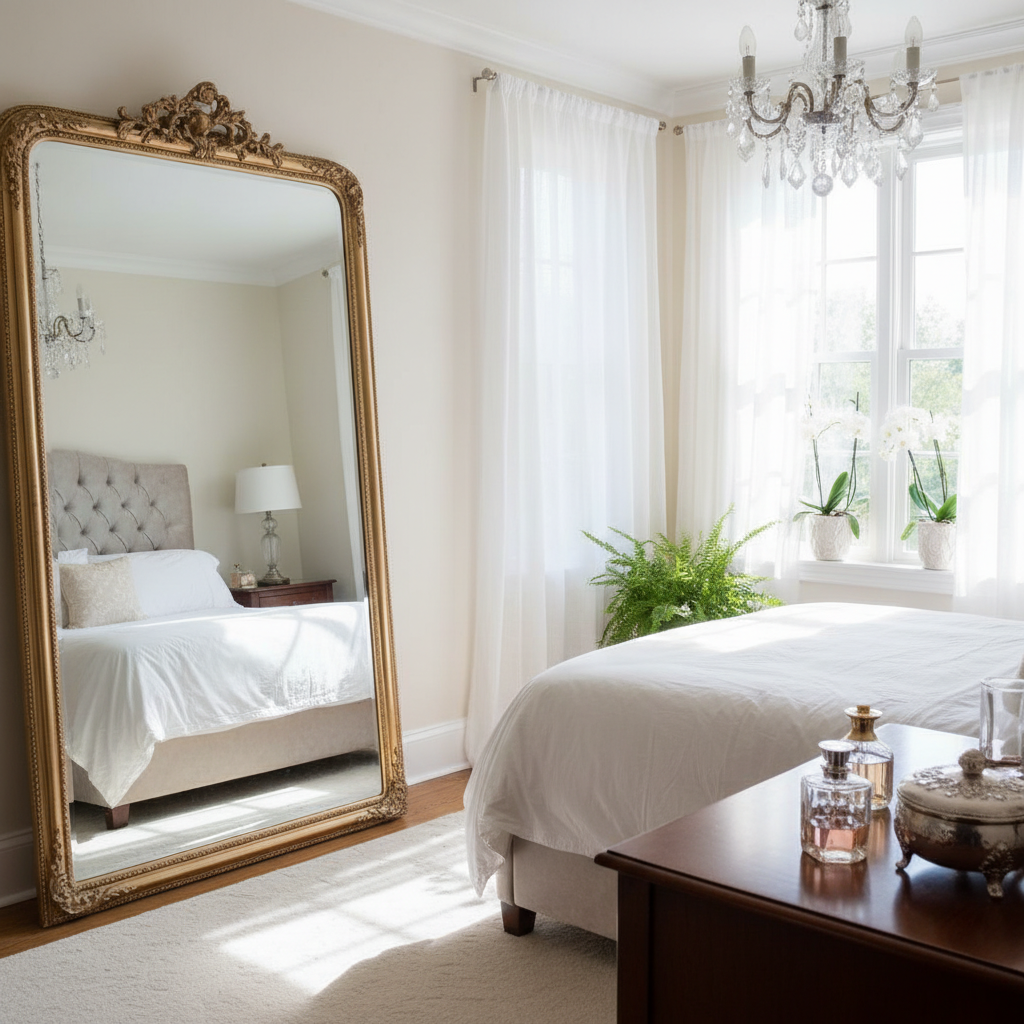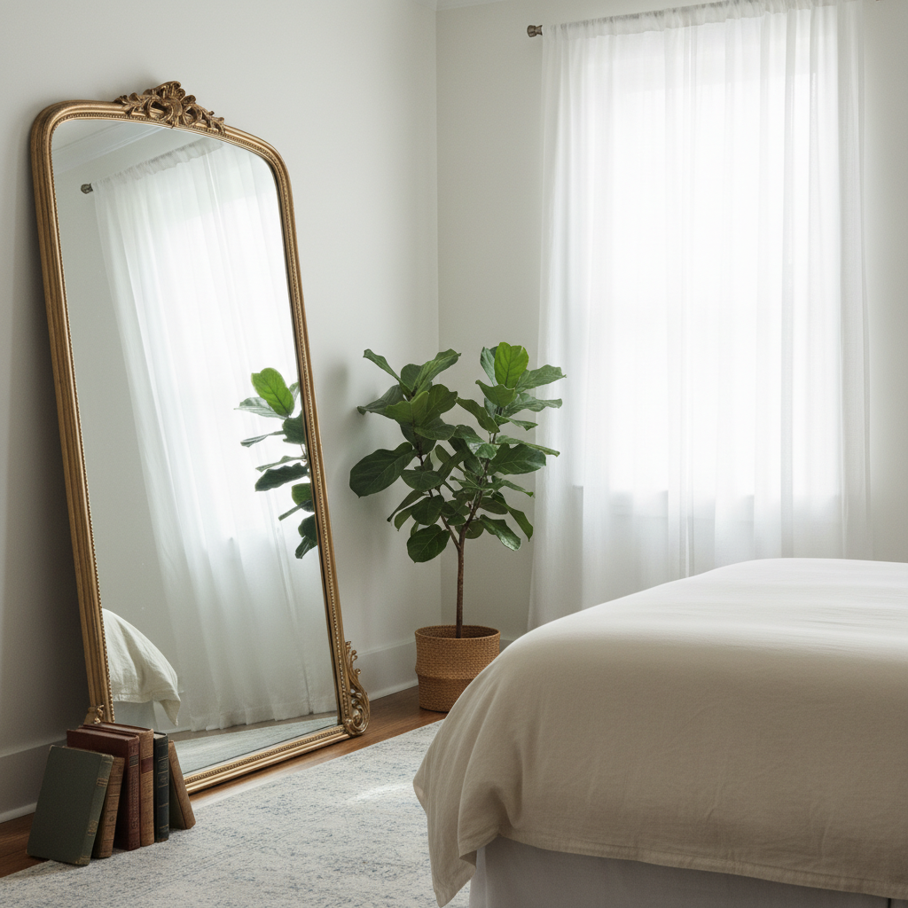More than just a tool for checking your outfit, mirrors are powerful design elements for small spaces. Place a large mirror opposite a window to reflect natural light and outdoor views, instantly doubling the perceived size of the room. A full-length mirror leaning against a wall also adds height and depth, creating an expansive, bright atmosphere.