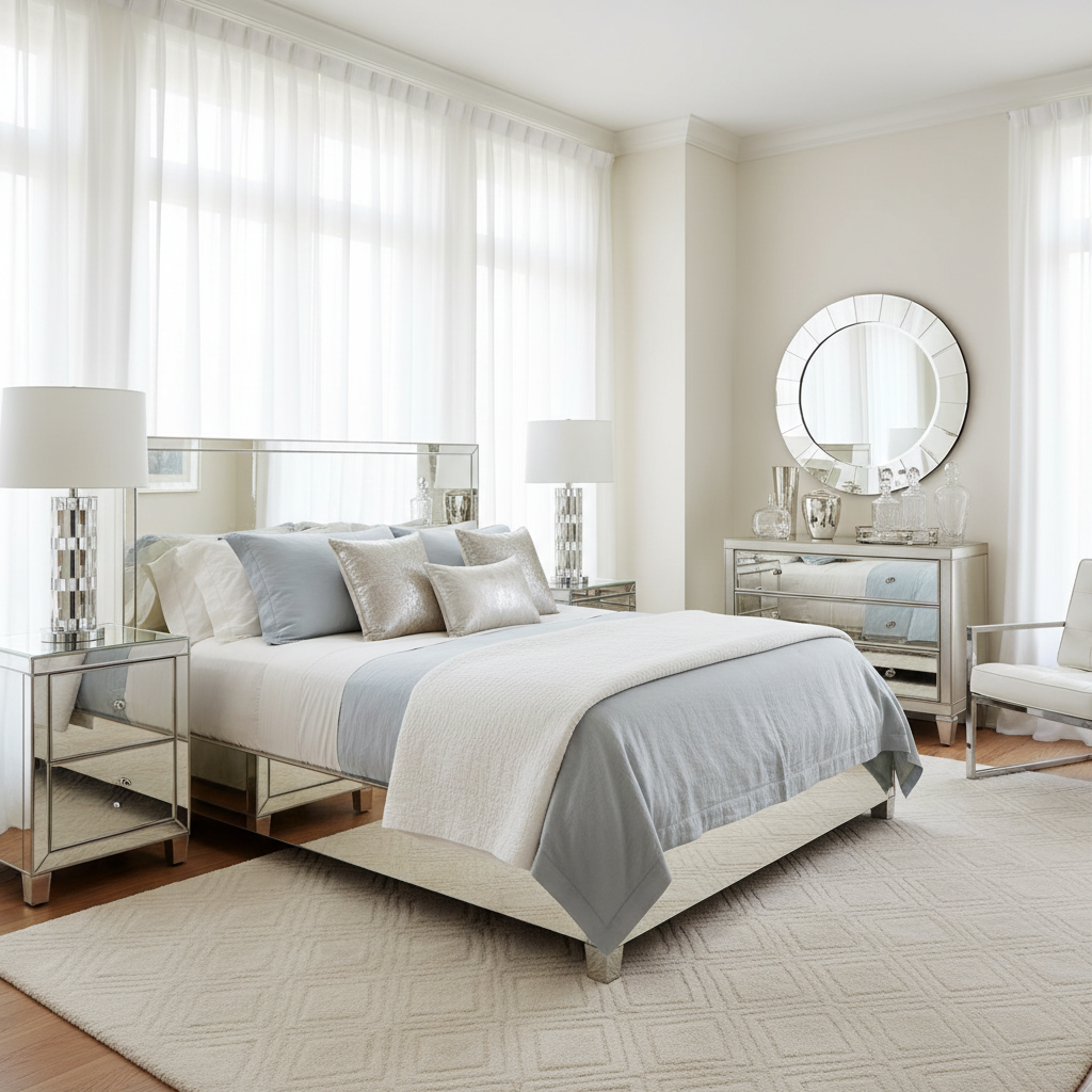 Beyond their practical function, mirrored closet doors are a classic trick for making a small room feel larger and brighter. They reflect light and create the illusion of depth, instantly expanding the visual space. This simple material choice brings a touch of glamour and airiness to any compact bedroom.