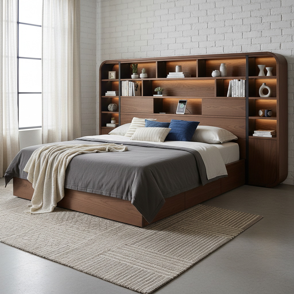 A headboard can be more than just a decorative element. Designs with built-in shelves, cubbies, or even pull-out compartments can replace nightstands and provide convenient storage for books, glasses, or small electronics. Look for sleek, modern designs in wood or upholstered finishes to blend functionality with comfort.