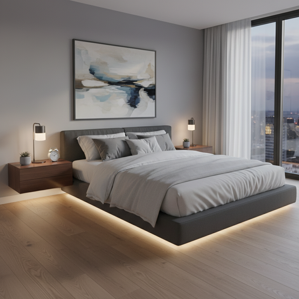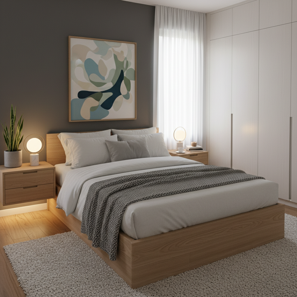 Similar to floating shelves, wall-mounted nightstands keep the floor clear, contributing to an open, airy feel. They can be simple floating boxes or more elaborate designs with a small drawer. Choose materials like light wood, white laminate, or even clear acrylic for a truly minimal look. The mood is light, modern, and uncluttered.