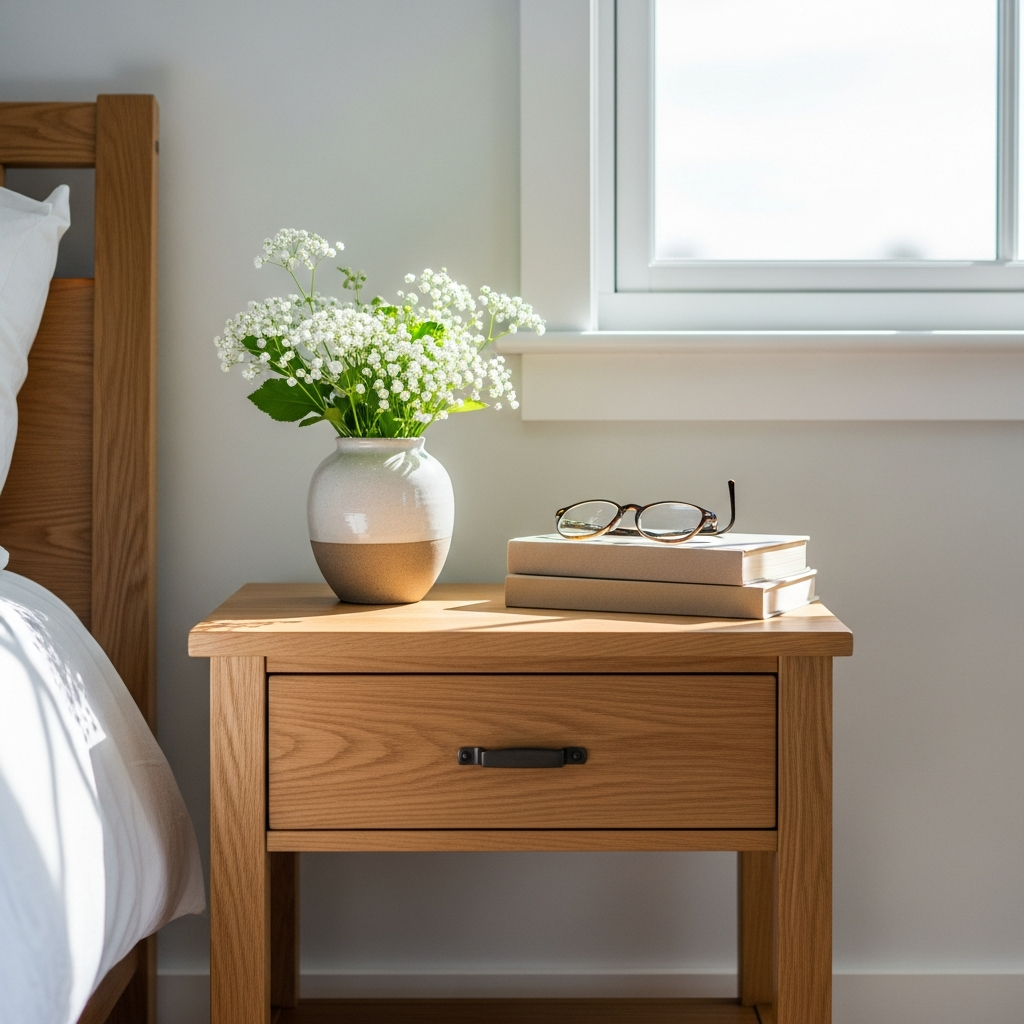 Reducing clutter is essential for a peaceful spring retreat. Choose minimalist bedside tables with clean lines and hidden storage. A tidy surface allows your spring decor, such as a single candle or a small bud vase, to stand out as a focal point.