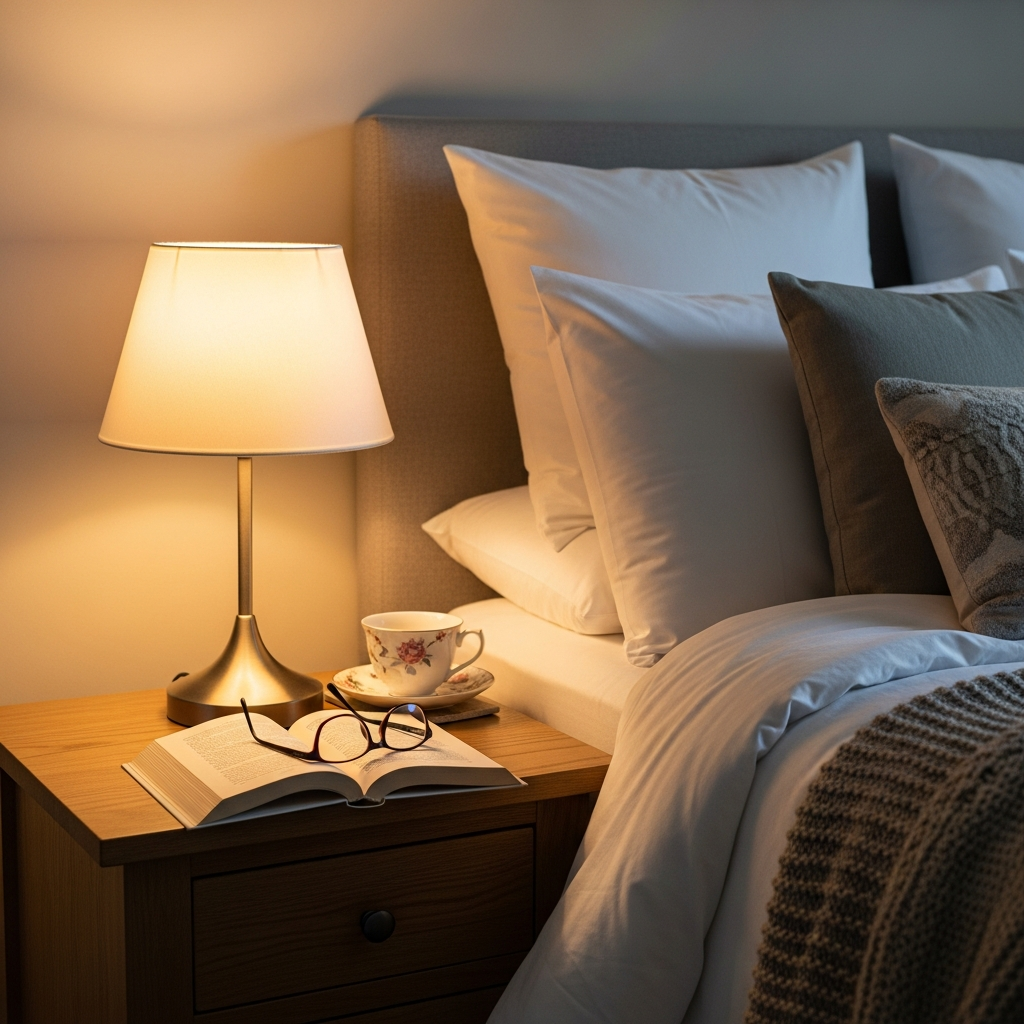 Lighting is crucial for maintaining a cozy vibe as evening falls. Instead of relying on overhead fixtures, layer your lighting with warm-toned bedside lamps, fairy lights, or soft LED strips. Aim for a color temperature between 2700K and 3000K to keep the environment inviting and gentle on the eyes.