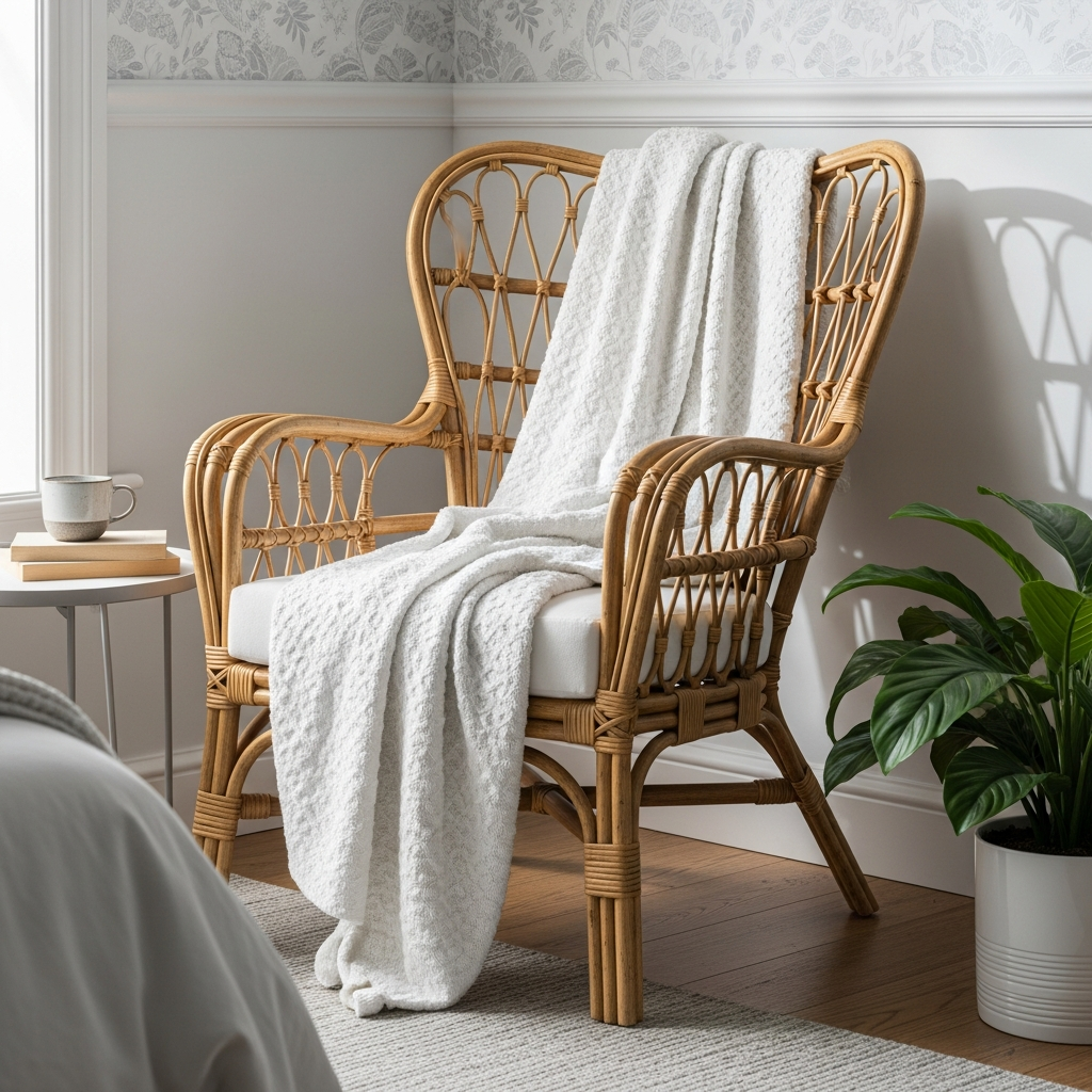 Rattan and wicker are perfect materials for adding texture without visual weight. A rattan headboard, a woven laundry basket, or even small decorative trays can introduce a touch of bohemian warmth. These elements bridge the gap between indoor comfort and outdoor freshness.