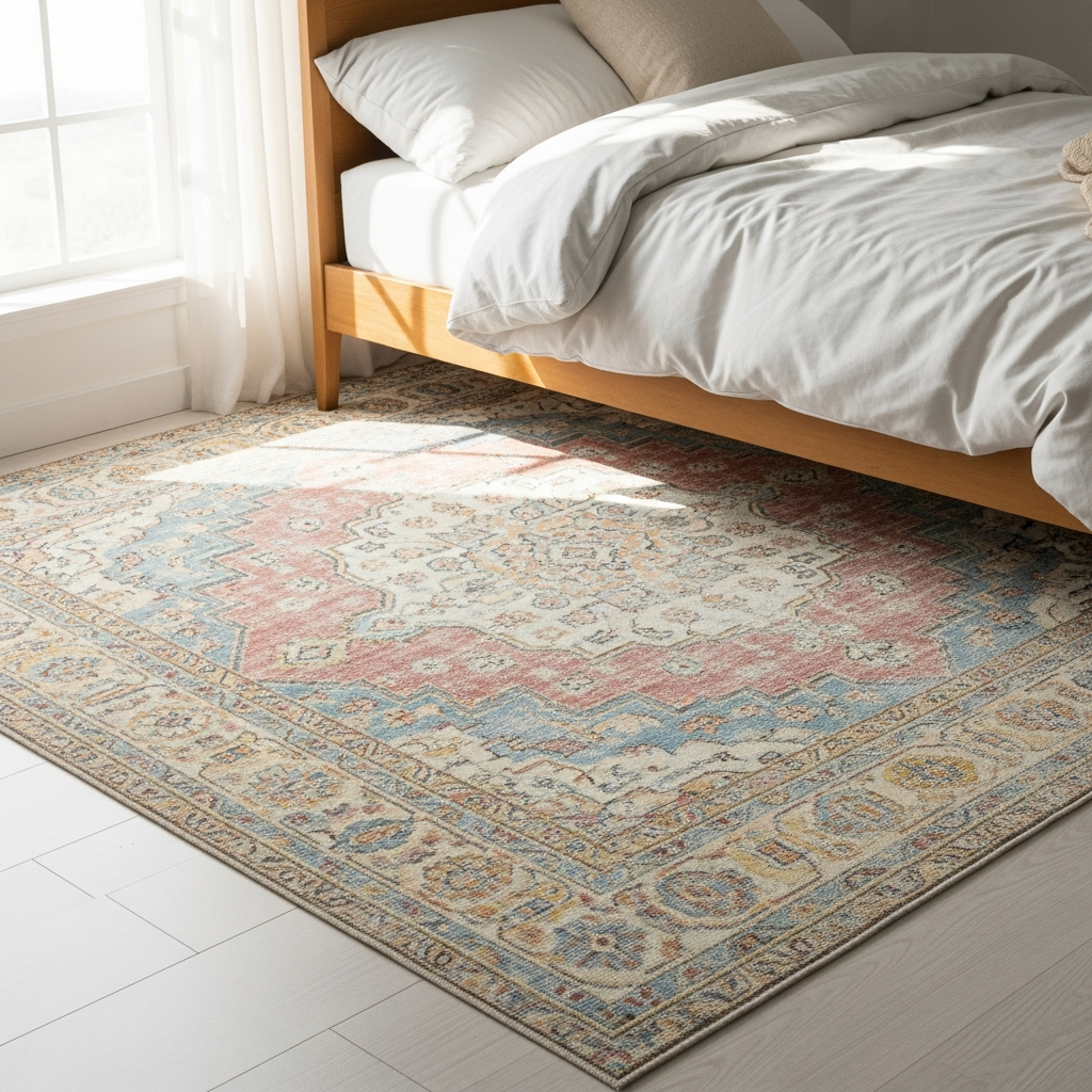 A rug can anchor the entire room. For spring, select a vintage-inspired rug with faded patterns and soft colors like cream, sage, or light blue. Low-pile rugs are easier to clean and provide a soft surface for bare feet without feeling too heavy for the season.