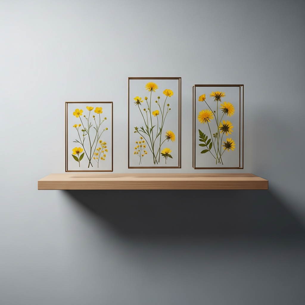 Floating frames create a unique visual effect where the botanical print appears to be suspended in mid-air. Placing pressed wildflowers between two panes of glass allows the wall color behind the frame to become part of the art. This style is particularly effective for small, delicate specimens that benefit from a clean, modern presentation.