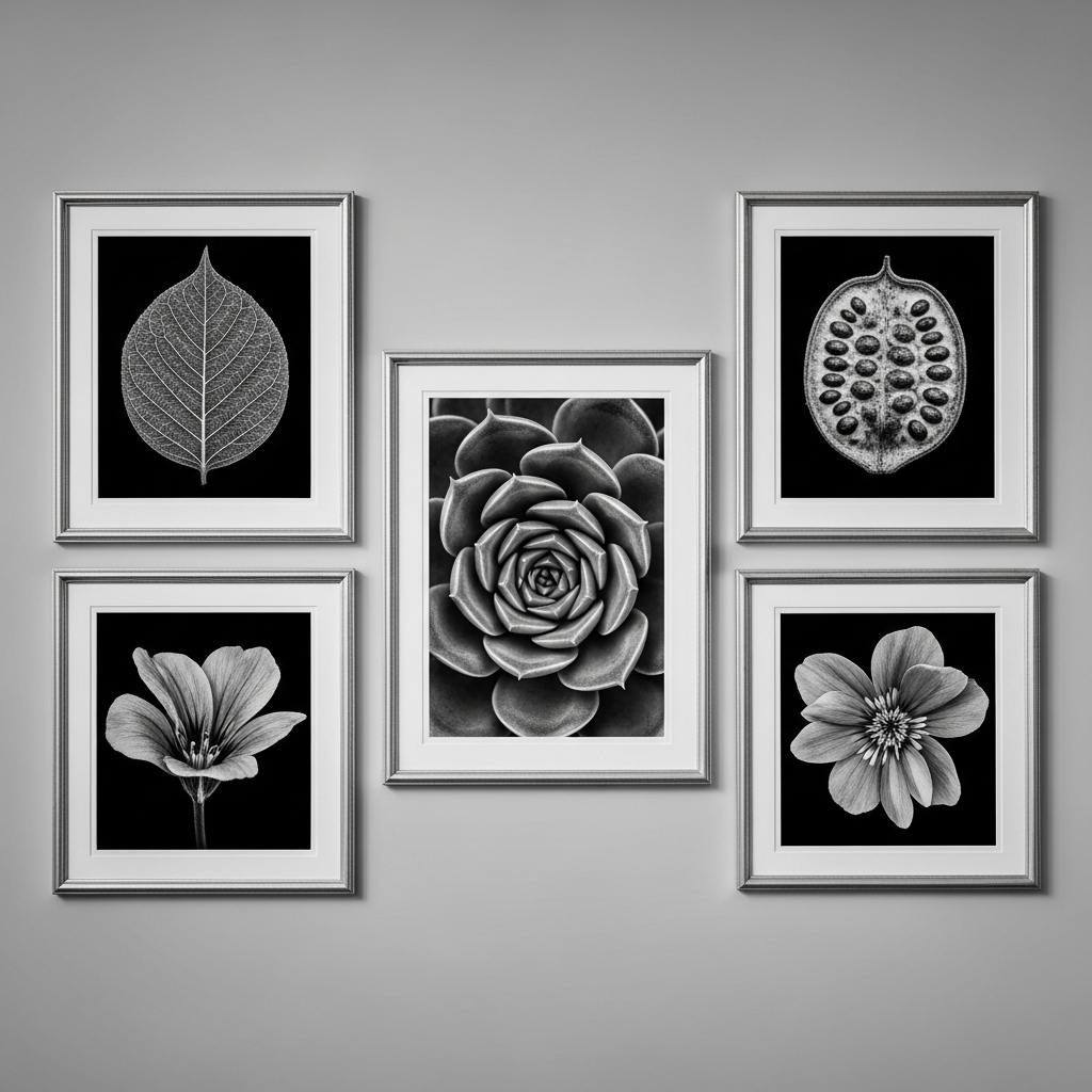 Black and white photography strips away the distraction of color to focus on the intricate architecture of plants. Close-up shots of leaf veins, seed pods, or flower petals add a sophisticated and modern edge to spring decor. This monochromatic approach is perfect for minimalist interiors that value texture and form.