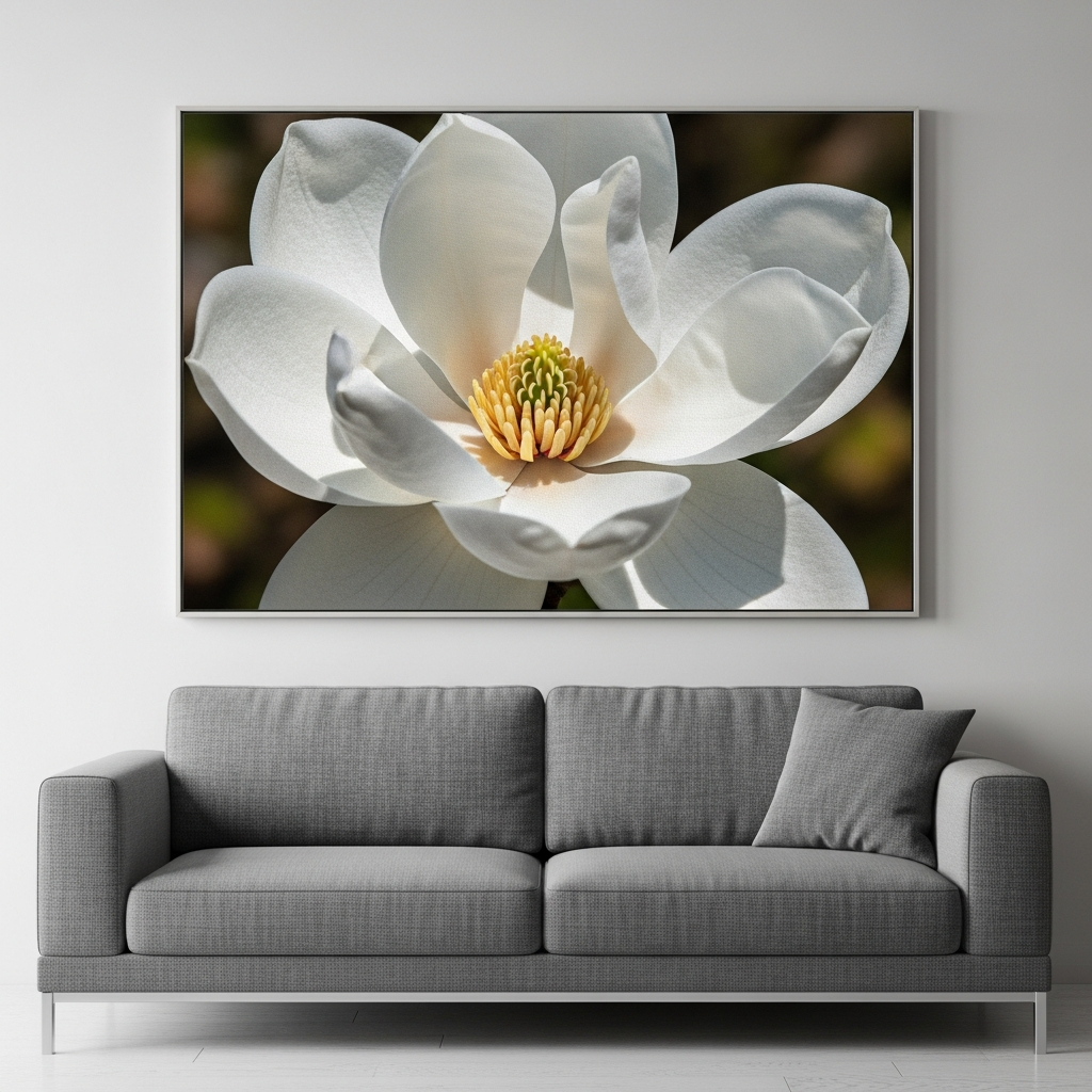 For a dramatic focal point, consider an oversized canvas featuring high-definition floral illustrations. Large-scale imagery of peonies or magnolias can transform a master bedroom into a tranquil garden retreat. The absence of a glass frame reduces glare, allowing the vibrant colors and soft textures of the botanical art to take center stage.