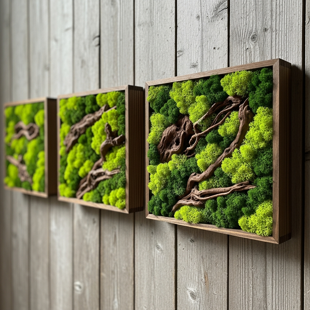 Moving beyond flat prints, shadow boxes containing preserved moss and driftwood add a three-dimensional element to your walls. These living-style art pieces require no maintenance but provide the lush texture and deep greens of a forest floor. They serve as a tactile reminder of nature’s complexity and beauty.