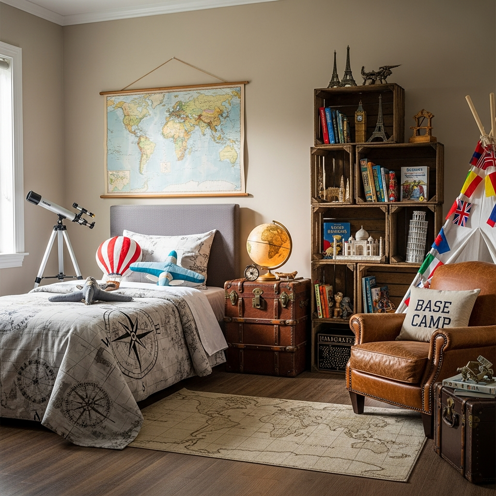 Create a world of discovery right in their room. Think maps, globes, and vintage luggage.
