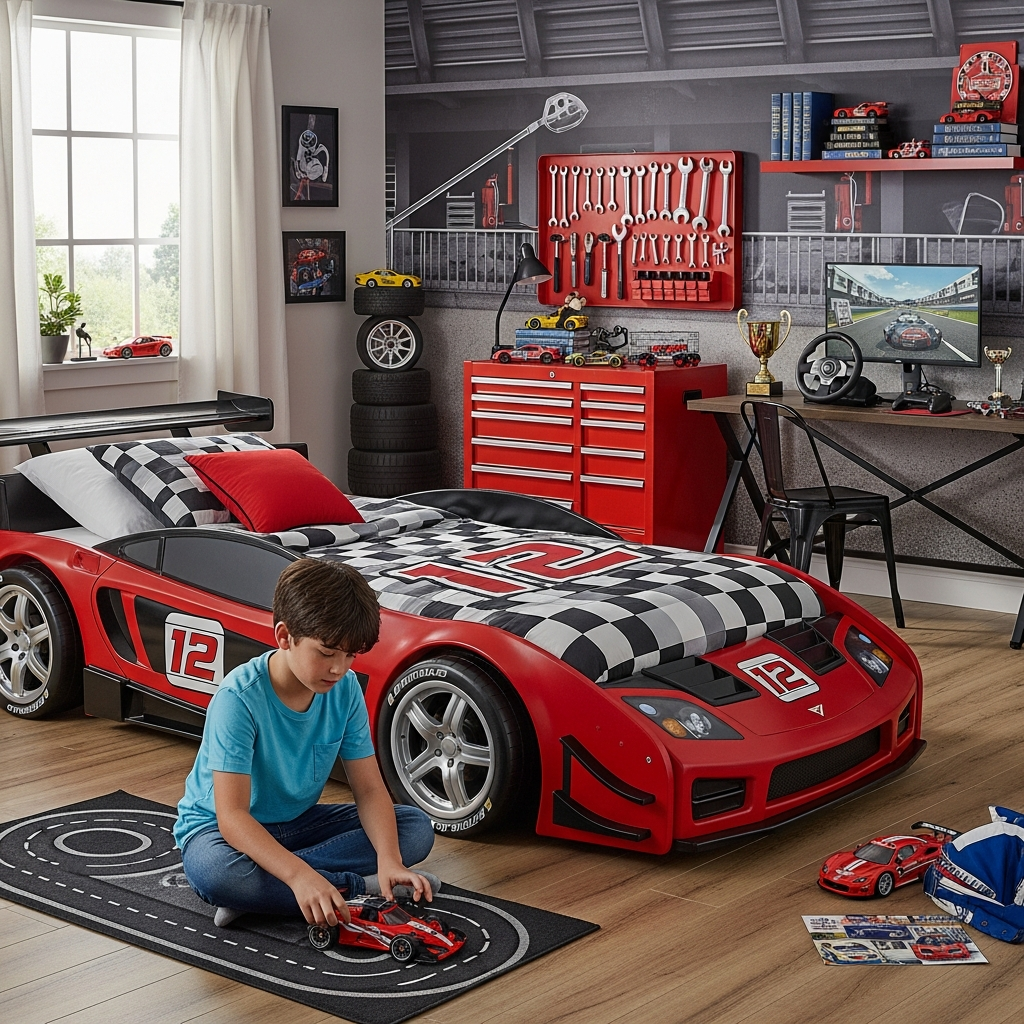 Perfect for the speed enthusiast, a room designed for fast-paced dreams.
