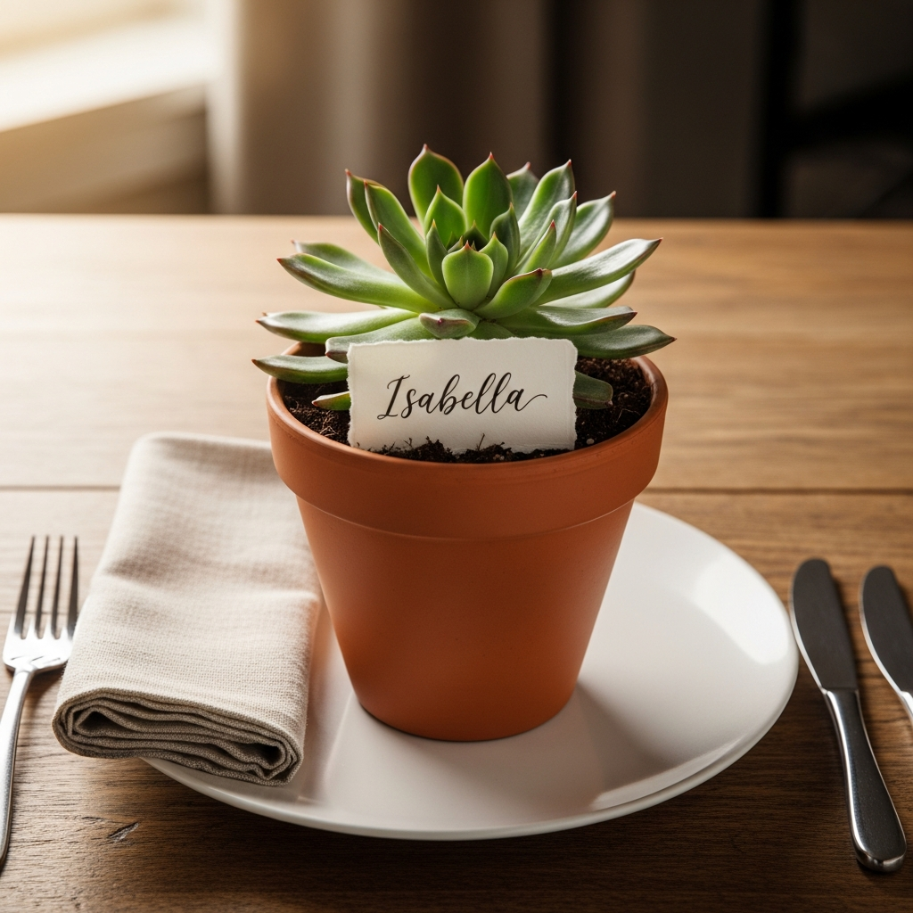 Add a professional touch to your gathering with personalized name cards. For a summer garden theme, consider using natural elements like smooth river stones, dried leaves, or small terracotta pots with the guest’s name written in elegant calligraphy. This detail makes guests feel valued and simplifies the seating process.