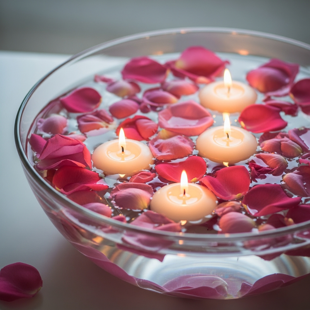12. Float Candles in Water Bowls