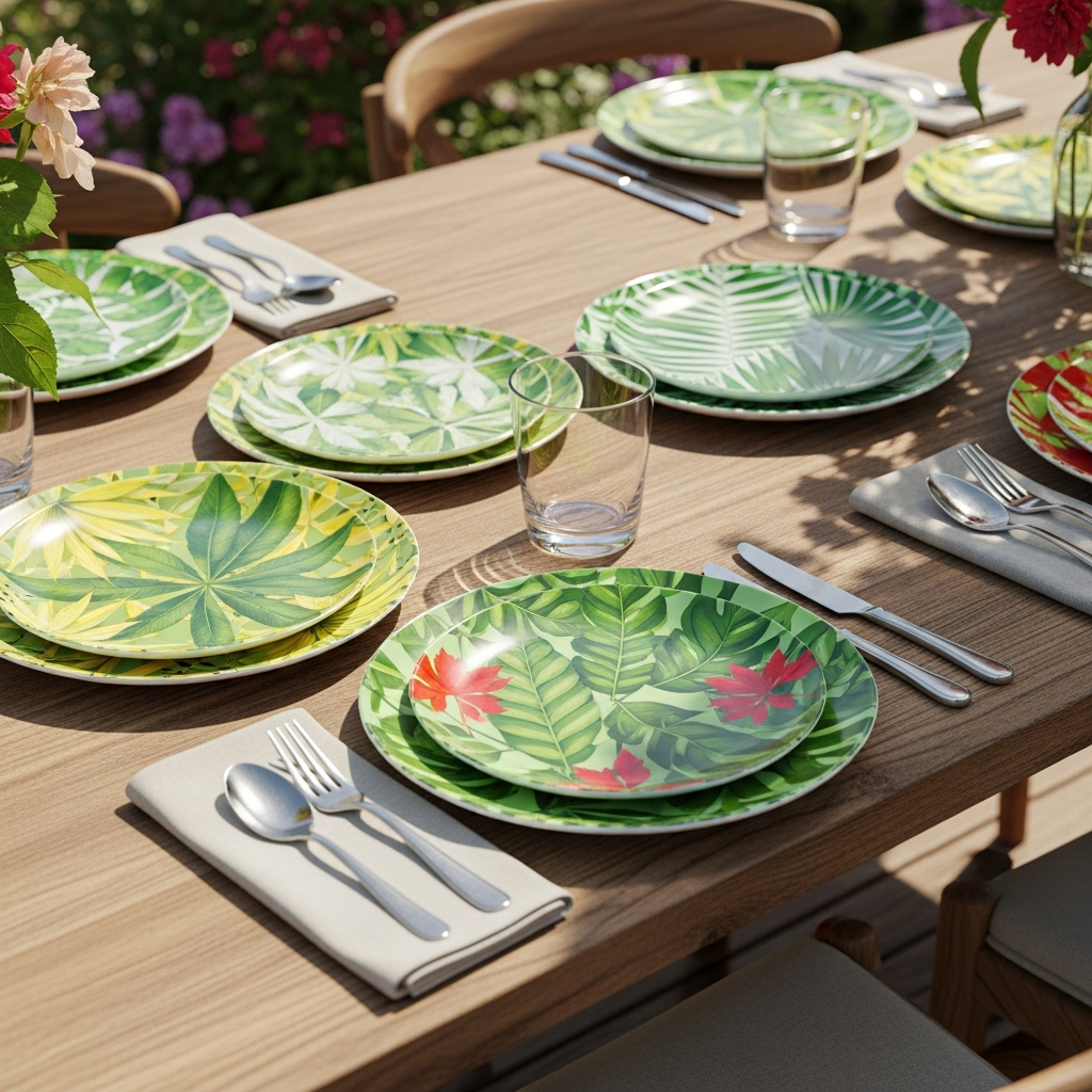 Modern melamine dinnerware comes in incredible patterns and vibrant colors that mimic high-end porcelain but are shatterproof and ideal for outdoor use. Choose bold botanical prints or geometric patterns to inject personality and energy into your table setup.