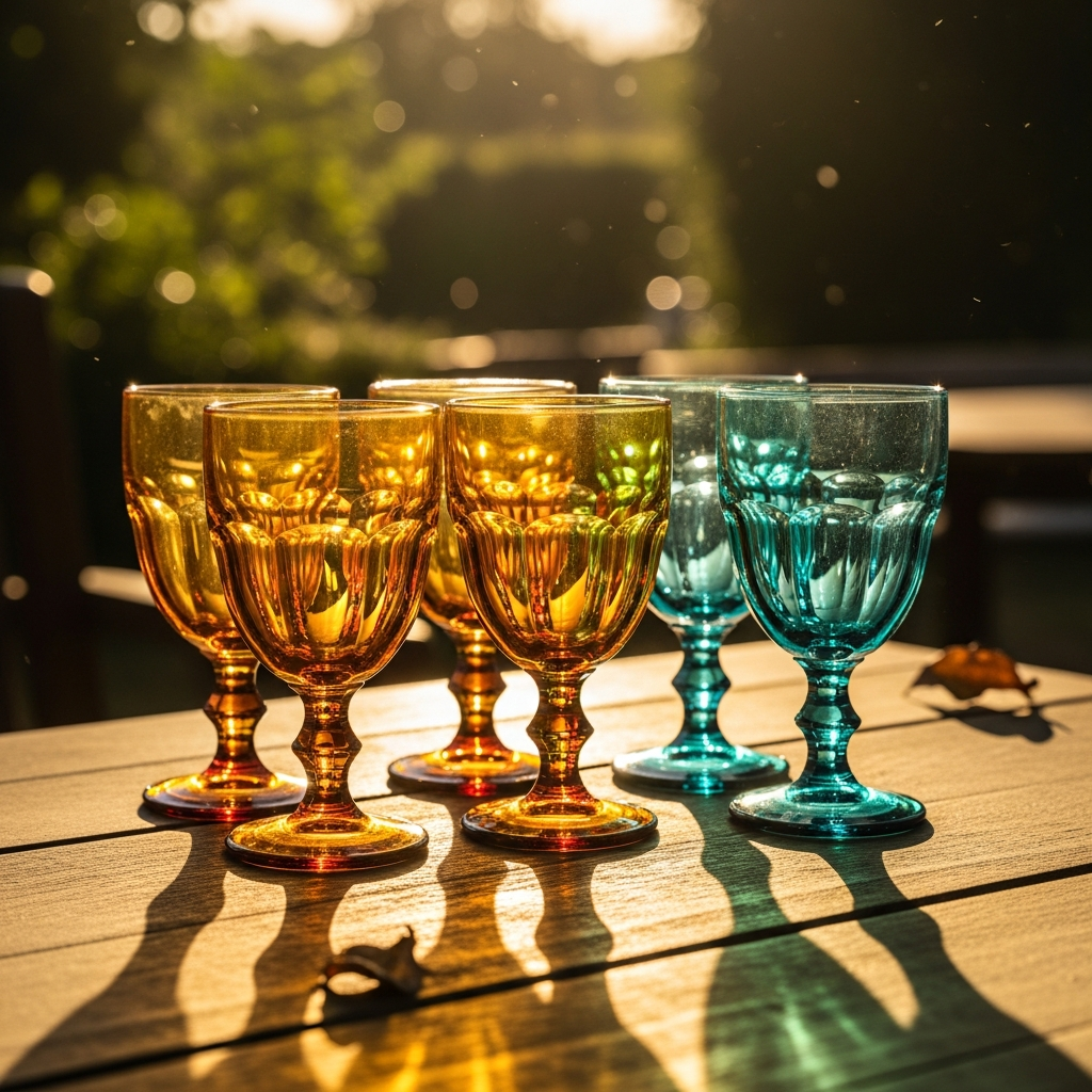 Colored glassware in hues of amber, turquoise, or emerald can transform a standard table into a visual masterpiece. When the sunlight hits the tinted glass, it casts beautiful reflections across the table. Mix and match different shapes and colors for a curated, eclectic look that feels both timeless and trendy.