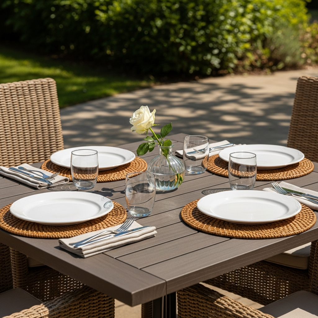 Rattan placemats add a layer of texture and a touch of bohemian flair to your table. Their sturdy construction protects your table surface while providing a rustic contrast to smooth ceramic plates. This natural material works exceptionally well in outdoor settings, grounding the decor in earthy tones.