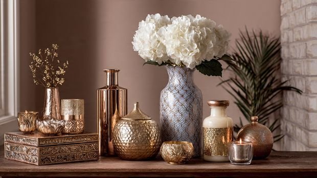 Metallic finishes like brass, gold, black, or brushed nickel can enhance the elegance of timeless decor. Use them in small doses, such as: