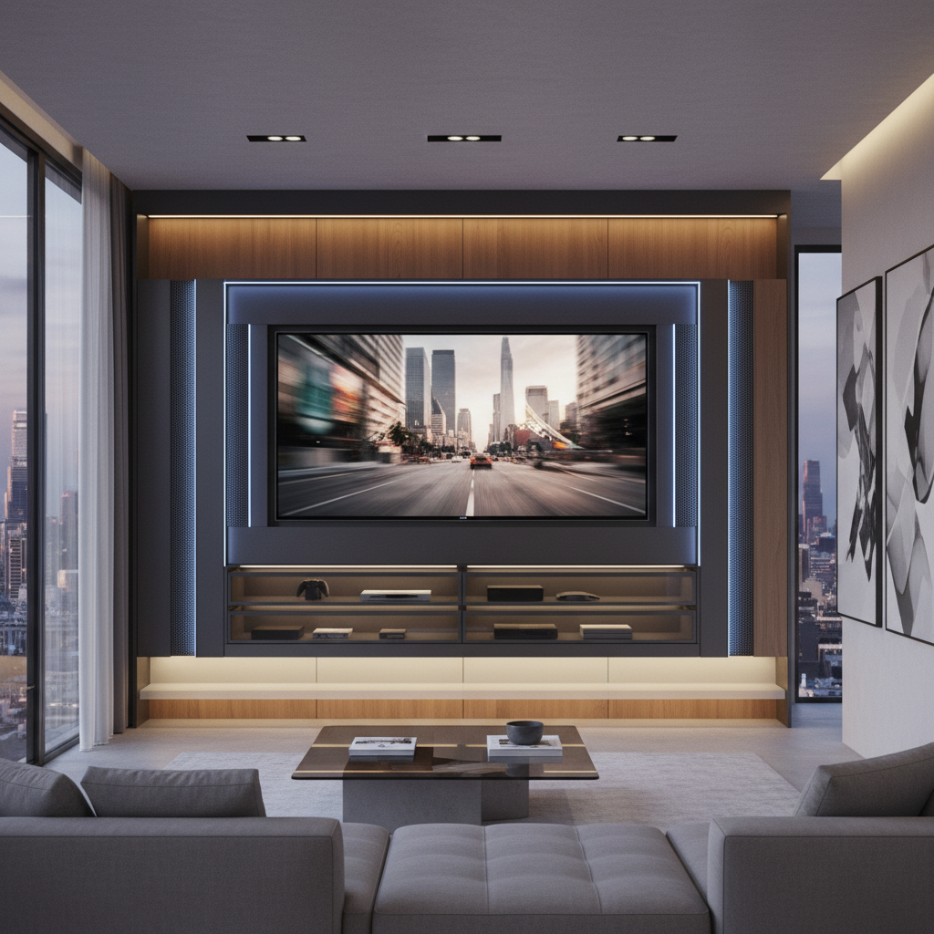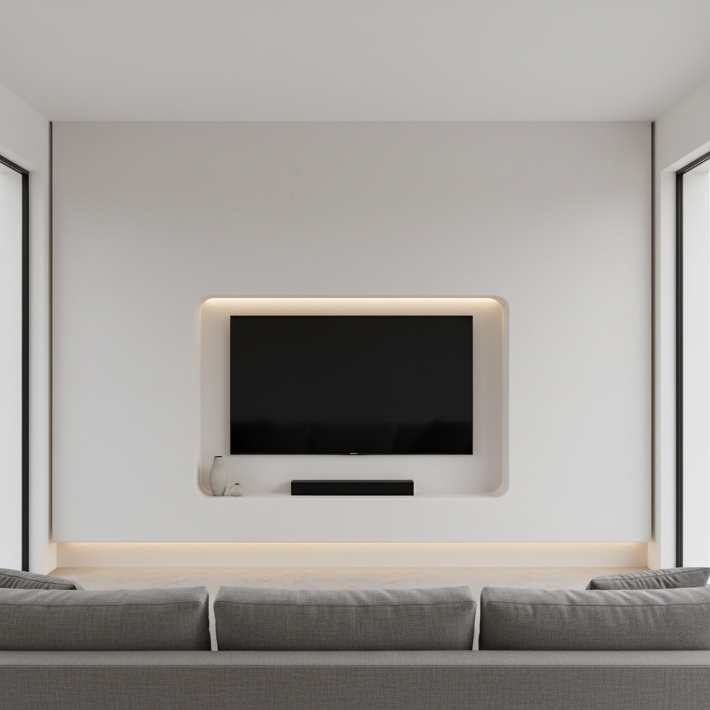 For the ultimate in seamless integration, consider recessing your television into a custom-built niche. This design eliminates protruding screens and cables, creating an incredibly flush and polished look. The surrounding wall can be finished with smooth plaster, microcement, or even a subtle wallpaper for added texture. This design speaks to meticulous attention to detail and a desire for absolute visual harmony.