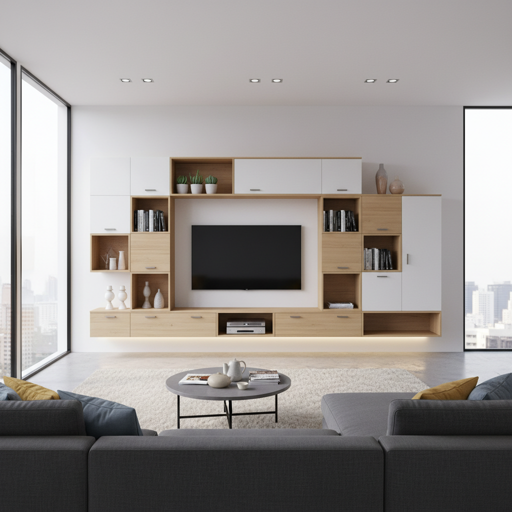 Modular wall units offer flexibility and adaptability. These systems allow you to combine different elements—cabinets, shelves, drawers—in various configurations to suit your specific needs and space. Often available in sleek, contemporary finishes, modular units provide a bespoke feel without the full custom build, making them a practical and stylish choice.