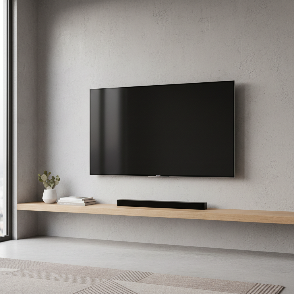 Wall-Mounted TV with Minimalist Shelf